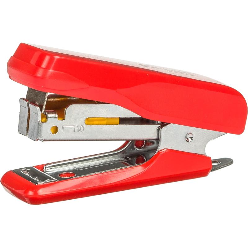 <p>Степлер Комус выполнен в пластиковом корпусе красного цвета и обладает компактными размерами. Рабочие компоненты изготовлены из высококачественной стали. Степлер совместим со скобами № 10, одновременно сшивая до 10 листов бумаги плотностью до 80 г/кв.м. Модель оснащена антистеплером, механизмом быстрой загрузки скоб и индикатором наполненности лотка для скоб, что делает ее очень удобной в применении. Степлер сшивает как закрытым, так и прямым типом сшивания. Закрытый тип сшивания, при котором ножки скобы загибаются внутрь, дает возможность надежно хранить сшитые документы на протяжении длительного времени. Прямой тип сшивания, при котором ножки скобы не загибаются, позволяет прикреплять объявления или документы к мягкой поверхности, например к пробковой доске. Для этого достаточно раскрыть степлер на 180 градусов и закрепить документ. Вместимость лотка для скоб: 50 скоб размером № 10. Глубина закладки бумаги: 25 мм.</p>