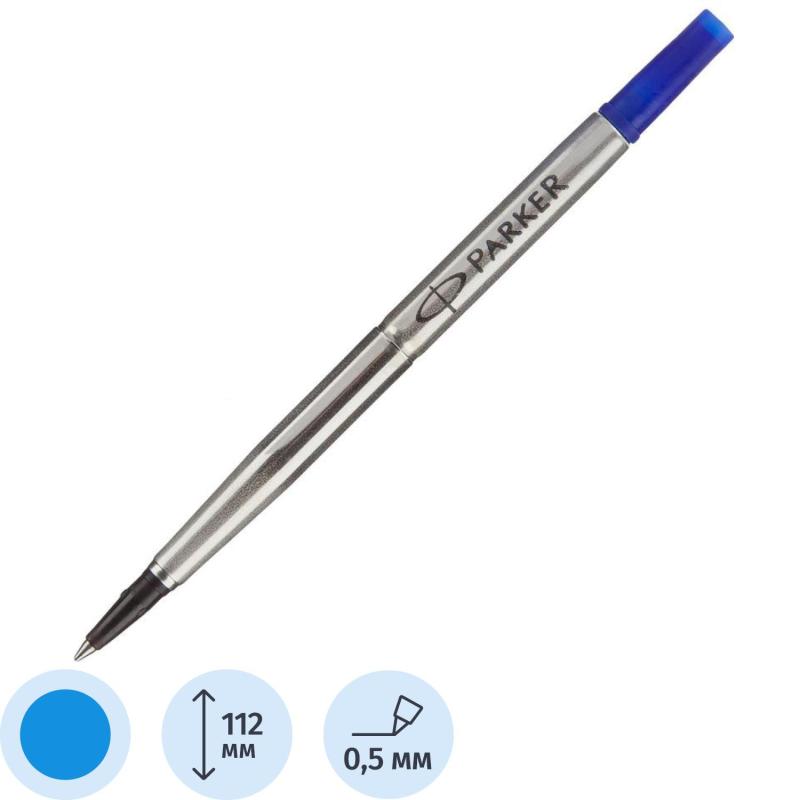 Стержень для роллера Parker с чернилами синего цвета, толщина линии - 0.5 мм, длина стержня - 112 мм, диаметр шарика - 0.7 мм. Обеспечивает четкие и яркие линии, не требует усилий при письме, чернила быстро высыхают. Подходит для ручек-роллеров TM Parker. Упакован в блистерную упаковку.<br><br>Внимание! Для самостоятельного подбора расходных материалов необходимо учитывать не только длину корпуса стержня, но и другие параметры: внутренний диаметр ручки, диаметр отверстия ручки и наконечника стержня, расстояние между пишущим узлом и «ушками» (при наличии), поэтому рекомендуется проверять совместимость ручки и стержня вручную.