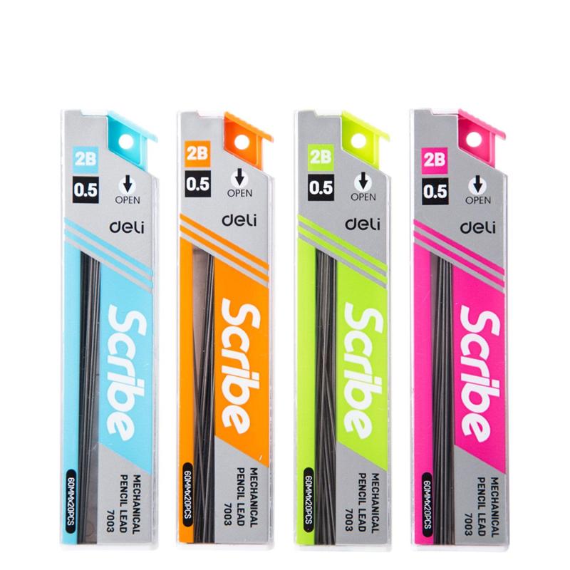 Сменный стержень микрографический Deli для автоматического карандаша. Стержень подходит для письма, точного рисования и черчения. Полимерное покрытие повышает его прочность, делает более устойчивым к поломкам и обеспечивает экономичное использование. Грифель легко скользит по бумаге, оставляя четкую яркую линию. Подходит к механическим карандашам любых производителей. Пластиковый футляр выполнен в 3-х тонах: голубом, зеленом, оранжевом, розовом. <br>В наборе 20 стержней толщиной 0,5 мм.<br>Твердость стержня: 2В.<br><br>Внимание! Товар поставляется в нескольких вариантах цвета корпуса (без возможности выбора).