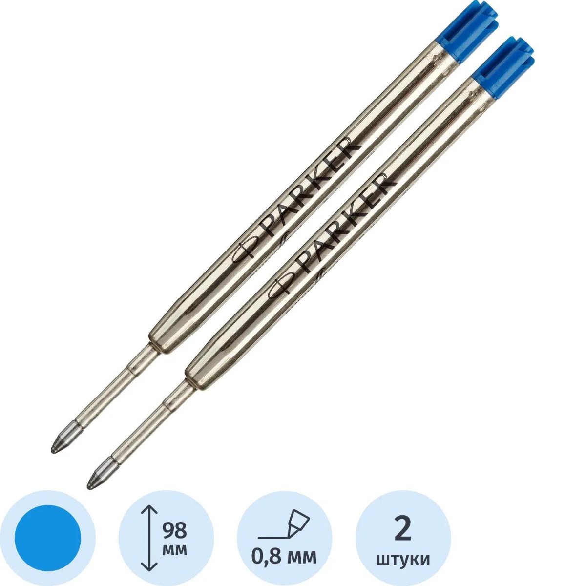 <p>Два стержня для шариковых ручек Parker с чернилами синего цвета, толщина линии — 0,8 мм, длина стержня — 98 мм, диаметр шарика — 1 мм. Обеспечивает мягкое письмо, чернила быстро высыхают, устойчивы к свету и влаге. Новое поколение стержней Quink c усовершенствованным пишущим узлом (шариком) и формулой чернил. Более гладкое письмо, быстросохнущая паста, точный контроль расходования чернил. <nobr>Никелево-палладиевый</nobr> пишущий узел (труба подачи и шарик). Подходит для всех шариковых ручек Parker.</p><br><br>Внимание! Для самостоятельного подбора расходных материалов необходимо учитывать не только длину корпуса стержня, но и другие параметры: внутренний диаметр ручки, диаметр отверстия ручки и наконечника стержня, расстояние между пишущим узлом и «ушками» (при наличии), поэтому рекомендуется проверять совместимость ручки и стержня вручную.