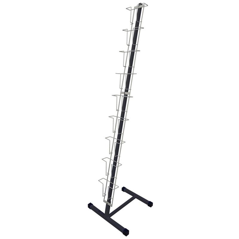 Стойка напольная Attache разборная на 9 лотков (чёрный хромированный алюминий, 1582×410×390 мм). Стойка предназначена для размещения печатной продукции формата А5 и менее. Имеет разборную конструкцию. Каркас изготовлен из стальной профильной трубы, карманы — из стальной проволоки. Покрыт порошковой краской. Стойка находится под наклоном в 11°, оснащена девятью карманами по форме похожими на подставки для книг.<br>Стойку можно использовать в качестве рекламного стенда на выставках, презентациях, в местах продаж.
