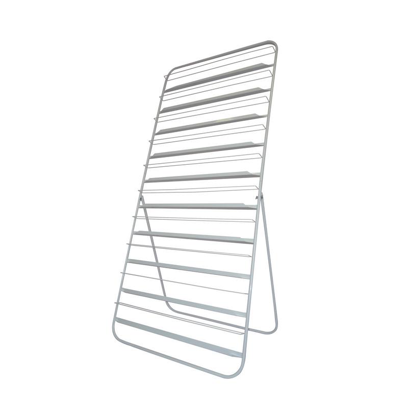 Стойка напольная Attache разборная на 10 лотков (белая, 200×90×53,5 см)<br>Размер собранного изделия: 900×540×2000 мм<br> Цвет: белый<br> Материал: металл<br> <br> Напольный стенд 10П представляет собой конструкцию для выкладки полиграфической продукции.<br> <br> Имеет разборную конструкцию, что удобно при транспортировке и хранении. На стенде размещено десять узких полок, не разбитых на отдельные карманы. Глубина полок — 3 см. Ограничитель расположен посередине, на высоте 110 мм от верхней и нижней полки. Стенд имеет небольшой наклон (11 градусов). При транспортировки подвижную подставку можно сместить к панели (принцип гладильной доски). Расстояние между полками 185 мм.<br> <br> Рекламный стенд отлично подойдет для выкладки журналов, буклетов, газет и поздравительных открыток. Это эффективный инструмент при проведении рекламных акций, презентаций, выставок.