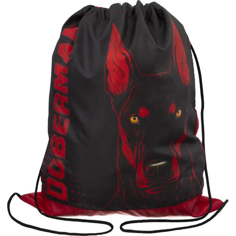 Мешок для сменной обуви Doberman 420×340 мм чёрный с ручками<br><br>Мешок для сменной обуви чёрного цвета изготовлен из полиэстера. Прочный материал обеспечивает долговечность и удобство в повседневном использовании. Изделие рассчитано на мальчиков дошкольного возраста и младших классов.<br><br>Мешок затягивается шнурком, что позволяет легко фиксировать обувь внутри. Дополнительные ручки делают его удобным для переноски. Размер 42×34 см подходит для хранения сменной обуви ребёнка.<br><br>Дизайн с изображением добермана придаёт изделию стильный и выразительный вид. Производится в России.