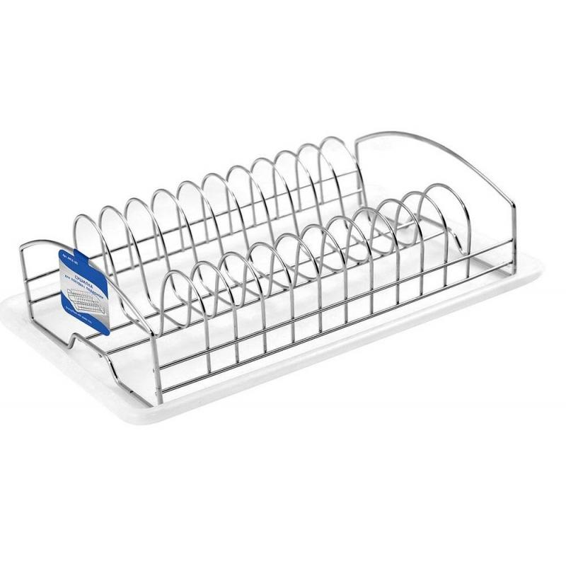 <p>Сушилка, изготовленная из хромированной стали, используется для сушки и хранения разнообразных тарелок и кухонных принадлежностей. <br>Размер сушилки: 33×20×9 см. <br>Комплектуется пластиковым поддоном для сбора влаги, что создает дополнительное удобство и практичность в уходе. Размер поддона: 38×25 см. <p /> <br><br>— перед первым использованием требуется тщательно промыть изделия; <br>— хранить изделия в чистом, сухом виде; <br>— не рекомендуется использовать губки с абразивным слоем; <br>— не рекомендуется промывка изделий в посудомоечной машине с использованием моющих средств, в состав которых входит активный кислород.