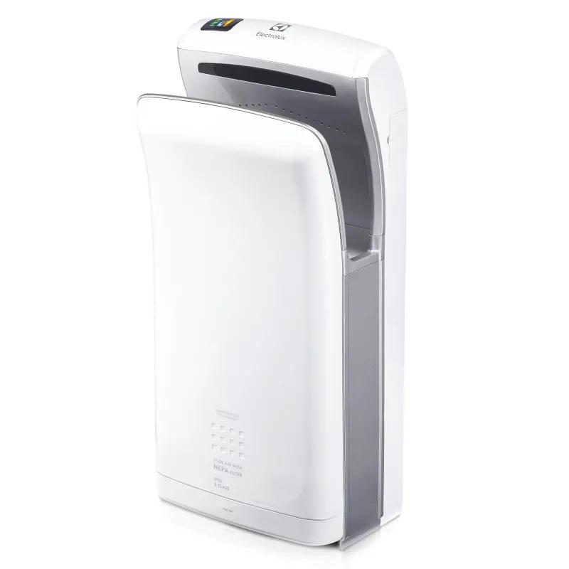 Модель EHDA/HPF-1200W — это отличное и современное решение для обеспечения быстрой и эффективной сушки рук. Прибор приводится в действие бесконтактно за счет чувствительного инфракрасного датчика. Он срабатывает в тот момент, когда пользователь подносит руки к воздуховыпускному отверстию и отключает прибор ровно тогда, когда пользователь их убирает. Такой способ включения прибора обеспечивает большую гигиеничность относительно контактного способа и экономию электроэнергии за счет более точных и коротких интервалов включения и отключения. В модели EHDA/HPF-1200W реализована технология двустороннего обдува Counter Flow, представляющая собой особую систему отверстий сушильного отсека, которая позволяет сушить руки одновременно с двух сторон мощными потоками теплого воздуха. Использование этой технологии делает процесс сушки рук более удобным, а помещение — чистым, поскольку вода, сдуваемая с рук в виде капель и брызг, попадает на дно сушильного отсека и стекает в специальную емкость — контейнер. Данный контейнер, расположенный на нижней стороне прибора, легко снимается и осушается. Специально разработанный мощный мотор позволяет добиться впечатляющей скорости потока в 324 км/ч, а это значит, что руки можно высушить менее чем за 10 секунд. Для удобства эксплуатации модель EHDA/HPF-1200W оснащена световым индикатором, отображающим основные режимы работы прибора. Также сушилка снабжена системой очистки воздуха из 2 фильтров: фильтром грубой очистки воздуха от крупных частиц пыли и HEPA-фильтром, который очищает воздух в помещении от мелких частиц и исключает контакт кожи с пылью и бактериями. Прибор изготовлен из высокопрочного и экологически чистого ABS пластика, который сохранит его первозданный вид и обеспечит стабильную работу на долгие годы. <br>Ключевые преимущества: <br>— Чувствительный инфракрасный датчик. <br>— Система Country Flow. <br>— Погружной способ сушки рук. <br>— HEPA Фильтр. <br>— Класс пылевлагозащищенности IPX2. <br>— Контейнер для сбора жидкости. <br>Эксплуатация электросушителя для рук:.<br>Включение электросушителя происходит автоматически, как только пользователь подносит руки на расстояние не более 20 см. <br>Отключение электросушителя происходит автоматически, через 1 сек после того, как пользователь уберет руки. <br>Способ крепления: на стену, вертикально. <br>Комплектация: <br>Электросушитель — 1 шт.<br>Монтажная панель — 1 шт. <br>Шурупы для крепления монтажной панели — 4 шт. <br>Дюбели для шурупов — 4 шт. <br>Вибропоглощающие прокладки — 4 шт. <br>Винты для фиксации прибора на монтажной панели — 2 шт. <br>Гарантия 2 года.