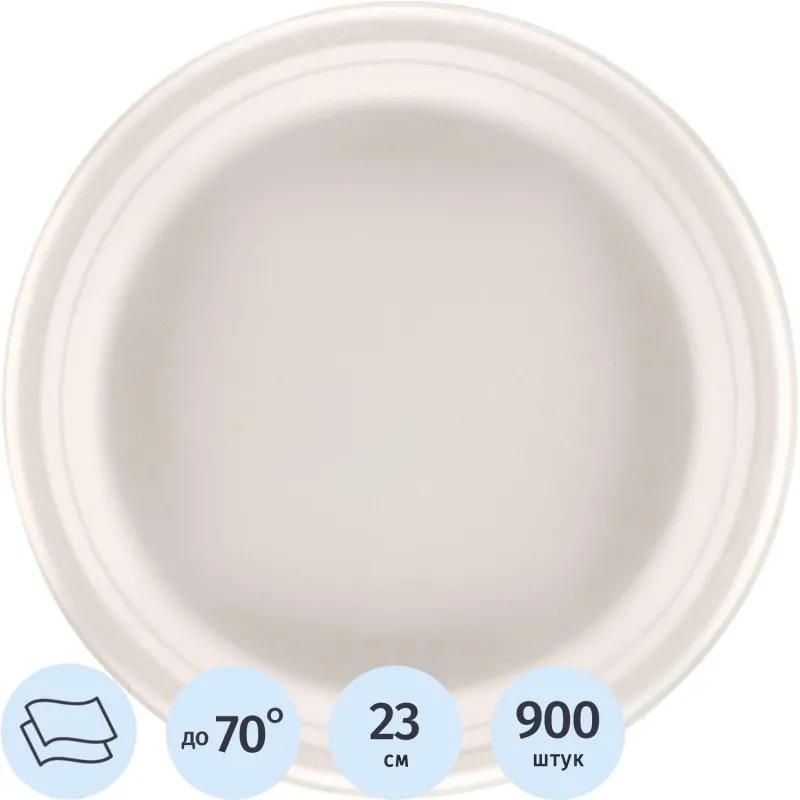 Тарелка одноразовая бумажная Средний 230 мм белая 900 штук в упаковке <br><br>Одноразовые бумажные тарелки предназначены для подачи горячих и холодных блюд на пикниках, корпоративных мероприятиях и в заведениях общественного питания. Благодаря прочной конструкции, не деформируются при удержании одной рукой и подходят для повседневного использования. <br>Тарелки изготовлены из белой бумаги. Материал не имеет запаха, не выделяет вредных веществ, безопасен для здоровья и допускает разогрев пищи в микроволновой печи. Поверхность влагостойкая и маслостойкая — не впитывает жидкость и жиры. <br>Диаметр тарелки — 230 мм, высота бортика — 20 мм. В упаковке 900 штук. <br><br>Внимание! Товар поставляется в транспортном коробе (короба могут отличаться по форме и размеру).