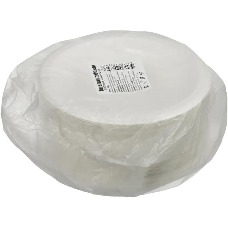 Тарелка одноразовая бумажная Средний 180 мм белая (1000 штук в упаковке) <br><br>Одноразовые бумажные тарелки подходят для подачи горячих и холодных блюд на выездных мероприятиях, в офисах и заведениях общественного питания. Компактный размер делает их удобными для использования на пикниках и в походных условиях. <br><br>Тарелки изготовлены из белой бумаги, не имеют постороннего запаха, безопасны для здоровья и не выделяют вредных веществ при нагревании. Материал влагостойкий и маслостойкий, не пропускает жидкость и жиры. Допускается разогрев пищи в микроволновой печи. <br><br>Диаметр тарелки — 180 мм, объём — 480 мл. В упаковке 1000 штук. <br><br>Внимание! Товар поставляется в транспортном коробе (короба могут отличаться по форме и размеру).