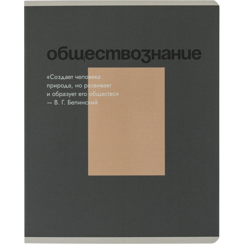 Тетрадь предметная по обществознанию Комус Класс Минимализм А5 48 листов в клетку, Soft Touch, ВД-лак<br><br>Тетрадь предназначена для занятий по обществознанию. Внутренний блок состоит из 48 листов белой офсетной бумаги плотностью 60 г/кв. м с клеткой синего цвета и полями. Размер листа — 16,4×21 см, формат — А5. Бумага отличается высокой степенью белизны, что делает записи более чёткими. Крепление выполнено на скрепках, расположено слева. Обложка мягкая, выполнена из картона плотностью 190 г/кв. м, оформлена в минималистичном стиле и защищена покрытием Soft Touch и ВД-лаком. Такое сочетание придаёт поверхности приятную текстуру и повышает её устойчивость к износу. Внутри предусмотрены разделители для удобной систематизации записей. Перфорация и отверстия для прошивки отсутствуют. Поле для подписи на обложке не предусмотрено.