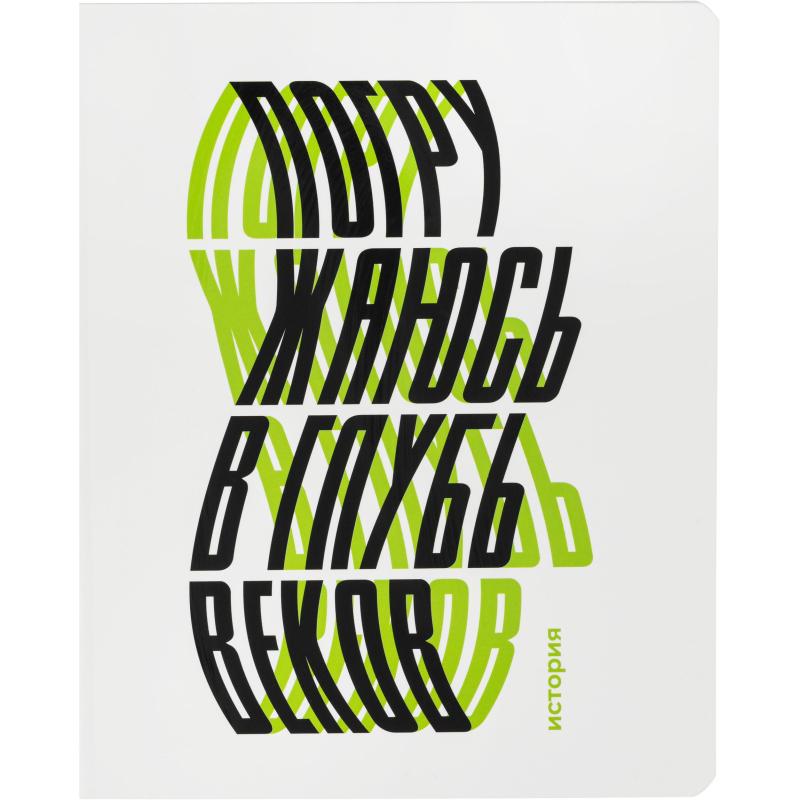 Тетрадь предметная по истории Комус Класс Кириллица А5 48 листов в клетку, Soft Touch<br><br>Тетрадь предназначена для школьных занятий по истории. Внутри — 48 листов белой офсетной бумаги с чёткой синей клеткой и полями, что обеспечивает аккуратное и структурированное оформление записей. Формат А5 (размер листа 16,4×21 см) делает тетрадь удобной для ежедневного использования. Бумага обладает плотностью 60 г/кв. м и высокой белизной (100%), что способствует комфортному письму и хорошей читаемости текста. Обложка из картона плотностью 190 г/кв. м с покрытием Soft Touch создаёт мягкое тактильное ощущение и защищает внутренний блок от повреждений. Крепление — скрепки, расположены слева. Перфорация и разделители отсутствуют, поле для подписи не предусмотрено.
