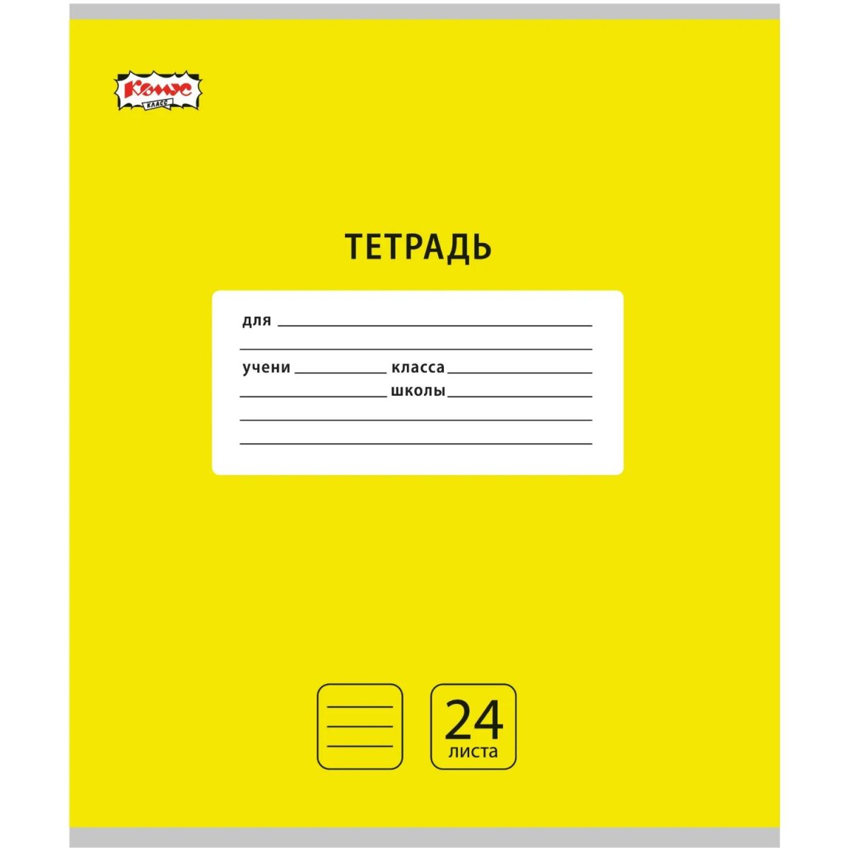 Тетрадь школьная жёлтая Комус Класс Интенсив А5 24 листа в линейку (10 штук в упаковке)<br><br>Школьная тетрадь формата А5 подходит для занятий по русскому языку и литературе. Обложка жёлтого цвета выполнена из мелованного картона плотностью 190 г/кв.м. Внутренний блок содержит 24 листа из офсетной бумаги плотностью 60 г/кв.м с белизной 98%. Линовка выполнена синими линиями и дополнена полями. Листы закреплены на скобу. Размер листа составляет 20.5x16.5 см. В упаковке содержится 10 штук.