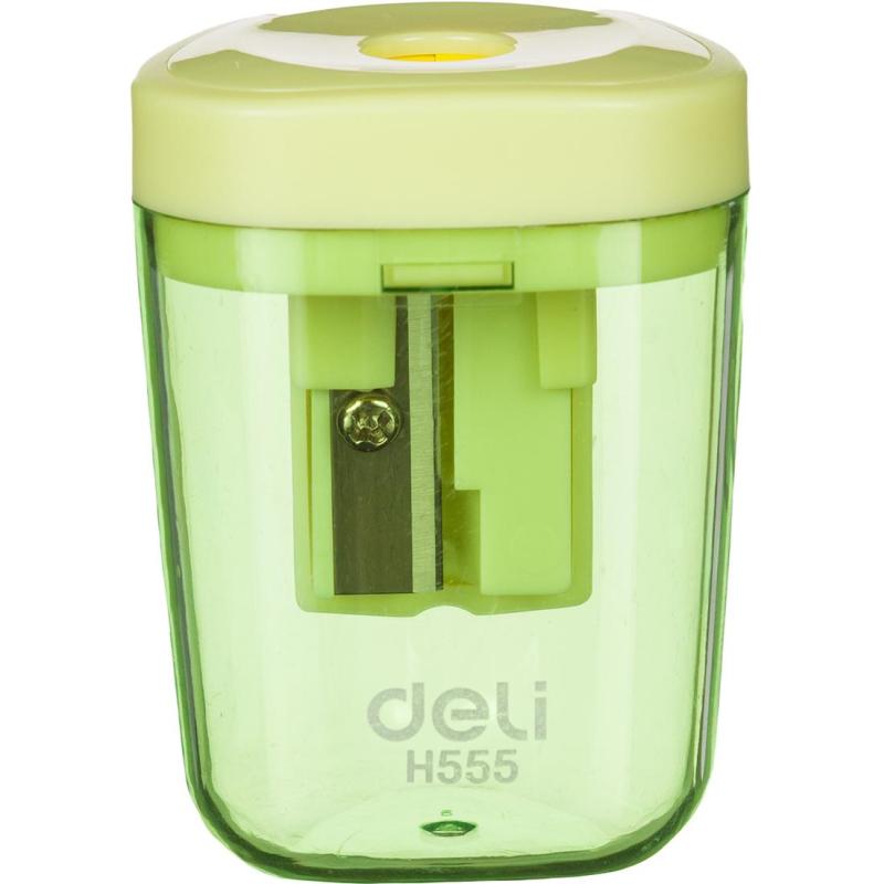 "Точилка для карандашей ручная Deli Comiko с одним отверстием. Лезвие с лазерной заточкой обеспечивает плавное затачивание и минимизирует возможность поломки грифеля. Корпус точилки изготовлен из прозрачного пластика. Подходит для карандашей, изготовленных из пластика и из любого вида древесины, любой формы (круглые, шестигранные, треугольные) с разной степенью мягкости. Точилка имеет защитную крышку, которая не дает карандашной стружке испачкать пенал. Размер точилки: 57×35×40 мм. Приятный и оригинальный дизайн порадует каждого покупателя. Поставляется в блистере.<br><br>Внимание! Товар поставляется в различных вариантах дизайна/цвета без возможности выбора.</b></p>