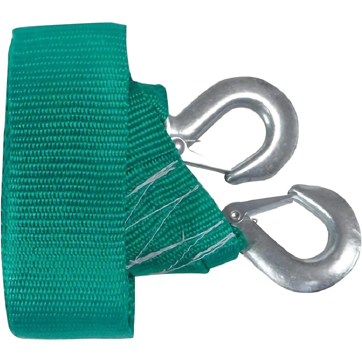 <p>Буксировочный <nobr>трос-лента</nobr> предназначен для перемещения автомобиля общей массой до 5 тонн. Незаменим в условиях бездорожья и в аварийных ситуациях. Изготовлен из сверхпрочного полиэстера. Он обеспечивает прочность и устойчивость <nobr>ленты-троса</nobr> к влаге, воздействию нефтепродуктов и других химических соединений. Стальные крюки с фиксаторами для прочной зацепки. Трос имеет оптимальную длину — 4 метра. Это позволяет буксировать автомобиль на безопасном расстоянии, не теряя управляемость буксируемого автомобиля. При буксировке не допускается рывков и провисания троса.</p>