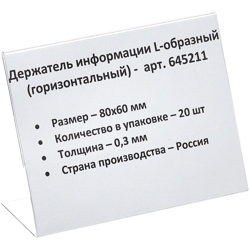 <p>Держатель информации из пластика<nobr>L-образный</nobr>. Применяется в качестве держателя ценников и информационного носителя.</p>