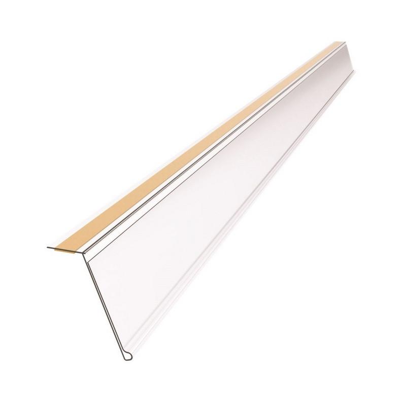 Ценникодержатель самоклеящийся на двустороннем скотче под углом 20°. Крепится к верхней части стеллажа. Перед установкой ценникодержателя необходимо очистить и обезжирить от грязи и пыли поверхность полки.
