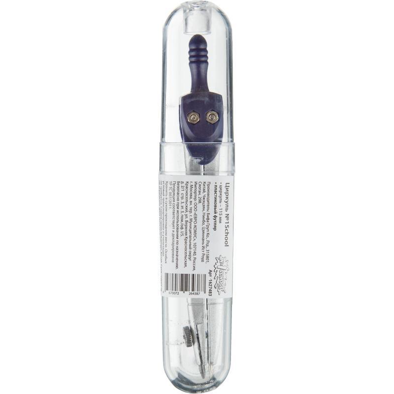 Циркуль № 1School цинковый сплав 115 мм (в пластиковом пенале, серебристый, S01001C). <BR>Идет в комплекте с пластиковым футляром. Идеален для школьников средних и старших классов. <BR>Материал циркуля — цинковый сплав. <BR>Длина циркуля — 115 мм.