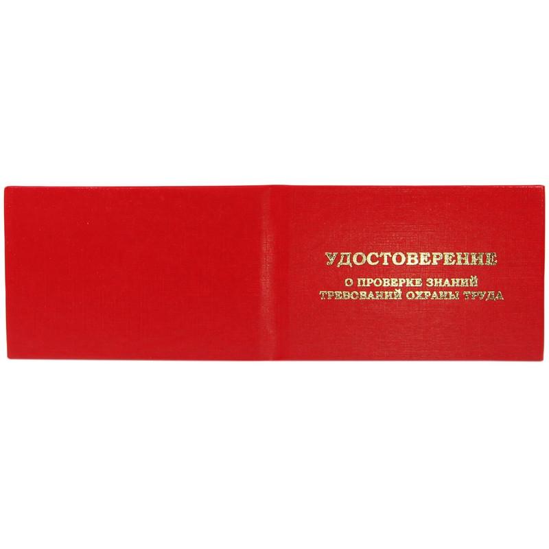 Удостоверение о проверке знаний требований охраны труда Attache.<br>Обложка жесткая.<br>Цвет красный.<br>На обложке имеется тиснение золотой фольгой.<br>Внутренняя выклейка черно/белая с графами для заполнения.