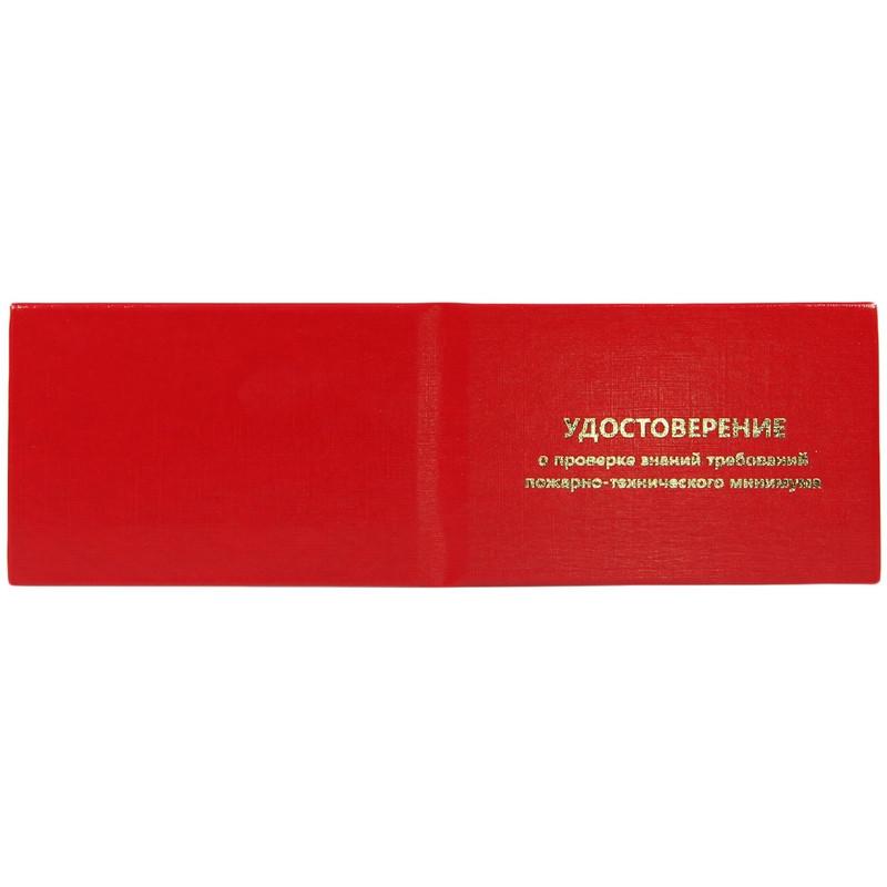 Удостоверение о проверке знаний пожарно-технического минимума Attache.<br>Обложка жесткая.<br>Цвет красный.<br>На обложке имеется тиснение золотой фольгой.<br>Внутренняя выклейка черно/белая с графами для заполнения.