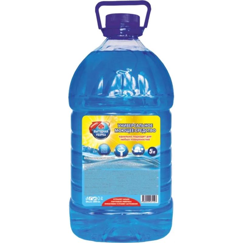 Универсальное чистящее средство Выгодная уборка жидкость 5 л<br><br><b>Назначение:</b> в качестве моющего средства для мытья твёрдых поверхностей: кухонных столов, мебели, внешней поверхности бытовых приборов, стен, пола, пластиковых покрытий <br><b>Способ применения:</b> растворите 50 мл средства в 5 л воды. Полученным раствором протрите очищаемую поверхность. Для удаления сильных загрязнений используйте средство в неразбавленном виде. Смойте средство с поверхности водой и протрите очищенную поверхность сухой салфеткой.<br><b>Меры предосторожности:</b> хранить в недоступном для детей месте. Людям с повышенной чувствительностью кожи применять резиновые перчатки! При попадании в глаза промыть большим количеством воды в течение 15-20 минут. При случайном проглатывании — прополоскать рот. При необходимости обратиться ко врачу.<br><b>Состав:</b> вода (более 30%), анионные ПАВ (5% или более, но менее 15%), натрий хлористый (менее 5%), неионогенные ПАВ (менее 5%), парфюмерная композиция (менее 5%), консервант (менее 5%), регулятор кислотности (менее 5%), краситель CI 42090 (менее 5%).<br><b>Условия хранения:</b> хранить при температуре от 0 до +25С, Не допускать воздействия прямых солнечных лучей и хранение вблизи отопительных приборов.<br><b>Срок годности:</b> 24 месяца с даты изготовления (дату изготовления см. на упаковке).