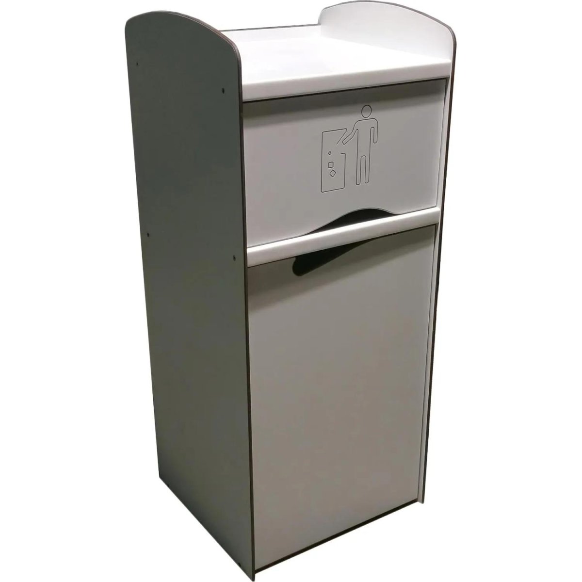 Урна для фудкорта Next 120 л пластик (125×60×50 см)<br><br>Урна для фудкорта представляет собой закрытую конструкцию с верхней полкой для подносов и качающейся крышкой-окном для сброса мусора. Внутренняя часть урны размещает тележку для пакетов объёмом до 120 л, с доступом для обслуживания через фронтальную дверцу. <br><br>Внимание: в характеристике «Объём рекомендуемого мешка» указан минимальный объём мешка, который подойдёт для изделия. Рекомендуется приобретать мешки указанного, либо большего объёма.