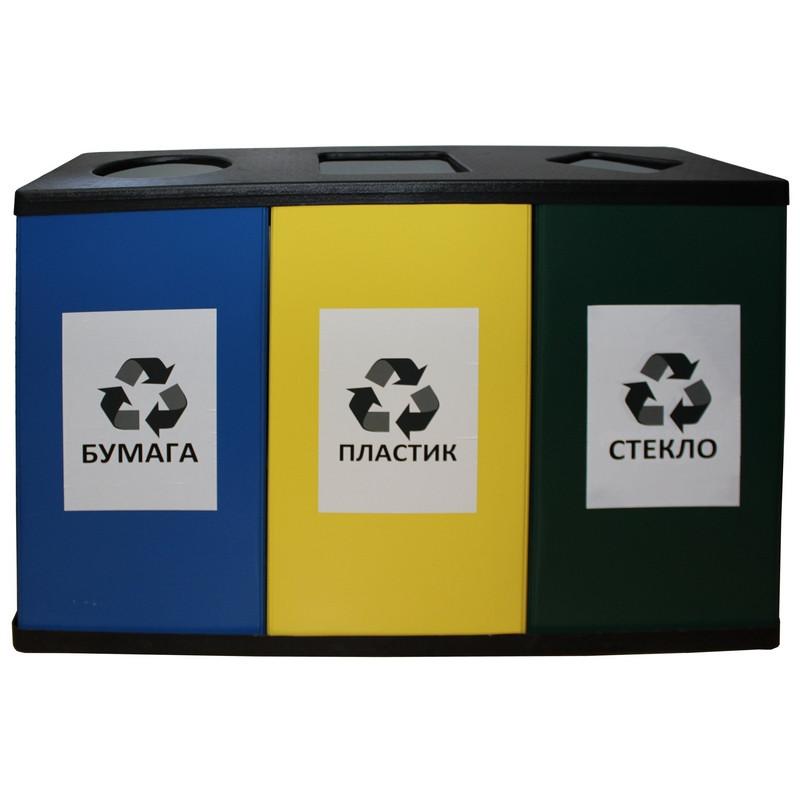 <p>Урна для раздельного сбора мусора <nobr>3-секционная</nobr> (бумага, пластик, стекло). Урна изготовлена из оцинкованной стали с полимерным покрытием, что значительно увеличивает срок ее службы. Поставляется в разобранном виде в компактной картонной таре, что значительно минимизирует затраты на хранение и логистику. Объем одной урны: 80 л. Закрытие урн не предусмотрено.</p><br><br>Внимание: в характеристике «Объем рекомендуемого мешка» указан минимальный объем мешка, который подойдет для изделия. Рекомендуется приобретать мешки указанного, либо большего объема.