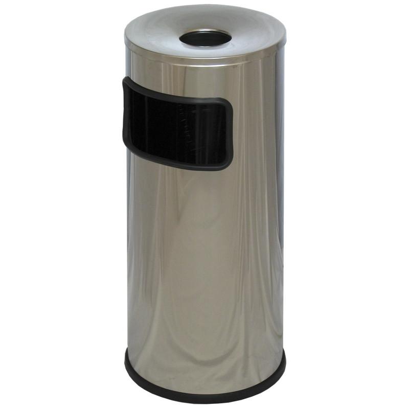 Урна-пепельница уличная Титан N 54 30 л хромированная сталь (60×25×25 см)<br><br>Урна выполнена из нержавеющей стали с хромированным покрытием. Может быть установлена как внутри помещения, так и во внешнем пространстве. Ёмкость для пепла находится в верхней части, снабжена удобными бортиками. Контейнер обладает прочностью, устойчив к вмятинам, легко моется обычными средствами и водой. На крышке не остаются следы пальцев. Урна выполнена в классическом стиле. <br>Урна не является огнебезопасной. <br>Уход за урной: Верхняя крышка с отверстием для окурков легко снимается и моется. Под ней размещён контейнер для предотвращения попадания горящих окурков внутрь урны. Боковое окно позволяет кидать более крупный мусор. Ёмкость для окурков можно снять и промыть. <br>Цвет каркаса — металлик, цвет бака — чёрный. <br><br>Внимание: в характеристике «Объём рекомендуемого мешка» указан минимальный Объём мешка, который подойдёт для изделия. Рекомендуется приобретать мешки указанного, либо большего объёма.