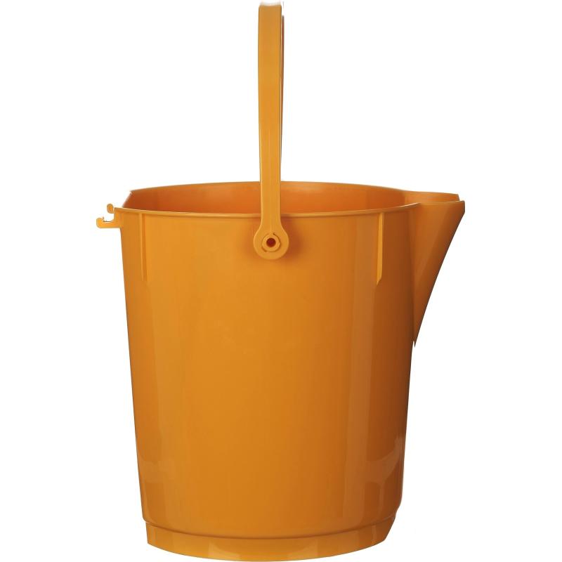 Ведро Ringa 12 л пластик жёлтое (сливной носик, с мерной шкалой, для пищевых продуктов)<br><br>Ведро выполнено из первичного полипропилена. Оно оснащено сливным носиком и мерной шкалой для удобного измерения объёма. Это цельнолитое, бесшовное ведро подходит для транспортировки и хранения сыпучих ингредиентов, жидкостей, пищевых продуктов и химических средств.<br><br>Ведро выдерживает температурный режим от −20 °C до +121 °C и имеет глянцевый внешний вид, что делает его более заметным на поверхностях. Внутри ведра нанесена мерная шкала, а в основании предусмотрено углубление для удобного захвата и хранения ведра в перевёрнутом виде. Ведро также имеет маркировку на дне «вилка-рюмка».<br><br>Цвет ведра — жёлтый. Размеры: высота — 30 см, по верхнему краю — 27×30 см, по нижнему краю — 23×24 см. Вес ведра составляет 785 г. Оно подходит для использования на предприятиях пищевой промышленности, в ритейле и HoReCa.