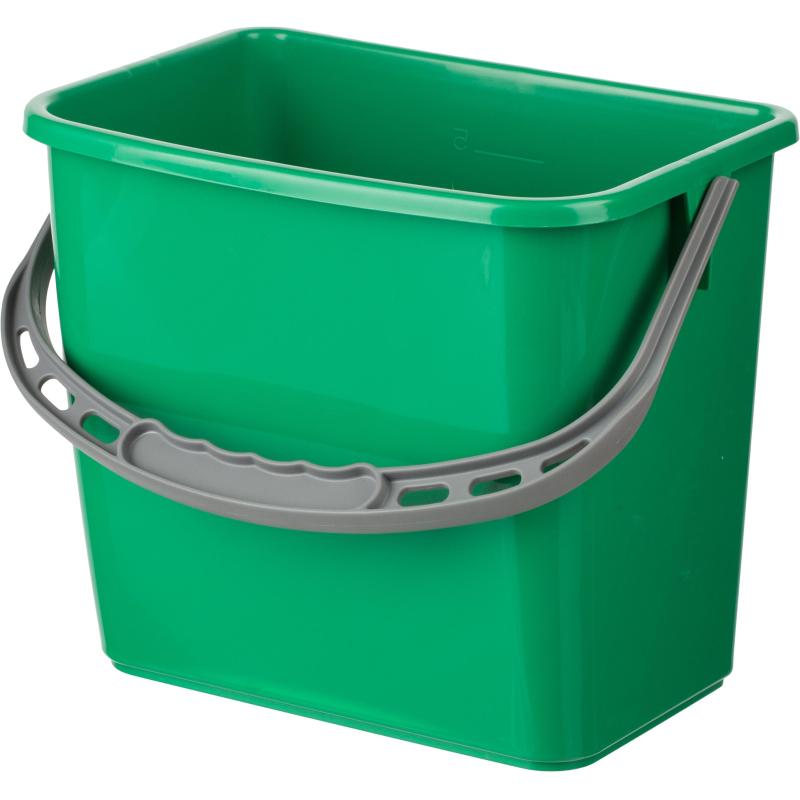 Ведро FBK 6 л пластик зелёное (с мерной шкалой)<br> <br> Предназначено для замачивания и полоскания тряпок в дезинфицирующем растворе. Ведро выполнено в прямоугольной форме и снабжено прочной пластиковой ручкой. Цвет ведра — зелёный.<br> <br> Ведро соответствует требованиям ХАССП и выдерживает температурный режим до +80 °C. Размеры ведра: по верхнему краю — 17.5×24 см, по нижнему краю — 12×21 см, высота — 21.5 см. Вес ведра составляет 350 г. Ведро не имеет крышки и является универсальным хозяйственным изделием.