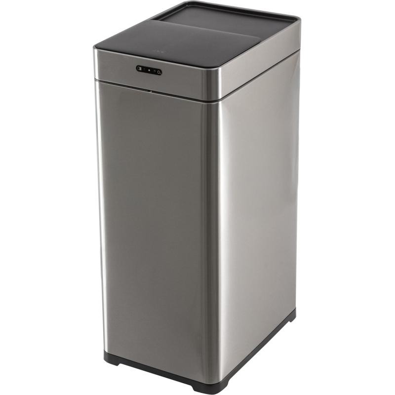 Ведро мусорное JVC JB0301S 30 л нержавеющая сталь с крышкой серебристое (51×25×34 см)<br><br>Сенсорное бесконтактное ведро для мусора — современное технологическое решение проблемы сбора и утилизации бытовых и пищевых отходов.<br>Наличие сенсорного мусорного ведра JVC JB0301S повысит уровень чистоты и престижности вашего дома. Но ещё более привлекательным является использование такой «умной» урны в общественных помещениях (офисах, торговых центрах и т.п.).<br>Хромированная поверхность, прямоугольная форма сенсорной урны позволяет ей выглядеть гармонично в любом интерьере вашей квартиры или офиса.<br><br>Основные характеристики:<br>- Тип крышки: сдвижная крышка, слайдер.<br>- Режимы открытия: автоматический режим индукции и ручной режим.<br>- Тип управления: сенсорное.<br>- Тип питания: батарейки АА.<br>- Объем: 30 л.<br>- Задержка автоматического закрытия крышки: 5 секунд.<br>- Задержка закрытия в ручном режиме: 2 минуты.<br>- Время работы на одном комплекте батареек: 4 батарейки типа АА (в комплект не входят).<br>- Рабочее расстояние сенсора: 10-25 см.<br>- Световая индикация работы.<br>- Надёжная фиксация пакета для мусора.<br>- Отсек для ароматизатора.<br>- Покрытие с защитой от отпечатков пальцев.<br>- Материал корпуса: нержавеющая сталь.<br>- Цвет: серебристый.<br><br>Функции:<br>- Функция дезинфекции озоном.<br>- Настройка режима индукционного расстояния.<br>- Напоминание о замене батареек.<br><br>Комплектация:<br>Ведро сенсорное, инструкция.