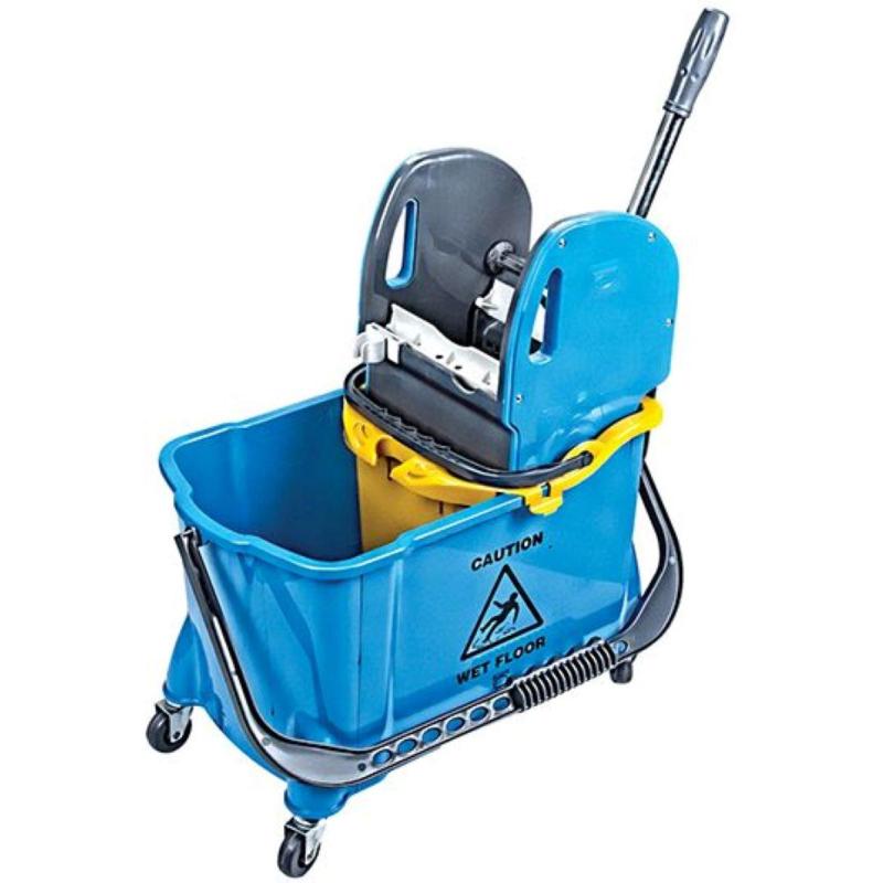 Ведро с отжимом A-VM 24 л пластиковое синее.<br>Ведро с отжимом HTS731 на колесах состоит из большого ведра объемом 24 литра и внутреннего ведра объемом 12 литров. Два раздельных ведра позволяют разделить емкости для ополаскивания и отжима. Ведро для пола с отжимом HTS731 оснащено вертикальным пластиковым отжимом MPP793, подходящим для любого типа мопов. <br>Форма: прямоугольная.<br>Качественные характеристики товара, особенности: ведро с отжимом, с мерной шкалой, с ручкой, с носиком. <br>Наличие носика: Да. <br>Наличие крышки: Нет. <br>Наличие мерной линейки/шкалы на внутренней стороне ведра: Да.<br>Наличие бортиков на внешней стороне дна: Да. <br>Тип отжима: вертикальный.