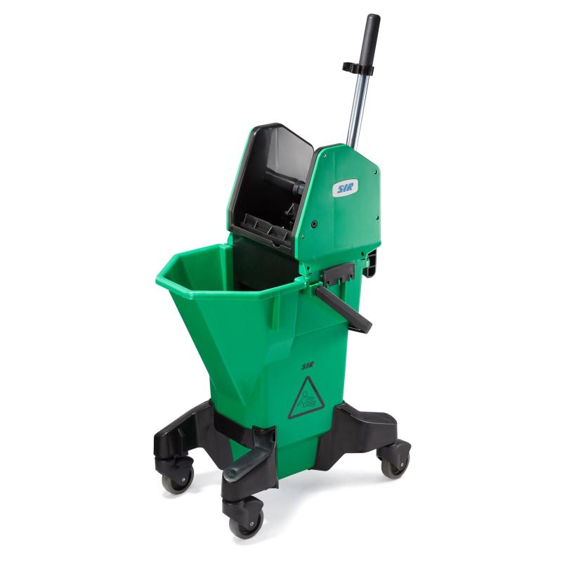 Ведро на колесах Syr Эрго NU3 с отжимом 26 л зеленое — это уникальное решение на рынке профессиональной уборки, объединяет 4 запатентованные технологии:<BR>1. Изготовлен и <nobr>АБС-пластика</nobr>. Средний срок службы 5–6 лет.<BR>2. Самое узкое профессиональное ведро в классе, что экономит место для хранения и увеличивает маневренность.<BR>3. Убирает в два раза больше площадь пола (до 500 м&178;) в сравнении с передовыми аналогами с одной заправки воды. Это происходит за счет запатентованной технологии <nobr>фильтра-ловушки</nobr>, которая удерживает грязь внутри.<BR>4. В несколько раз быстрее ополаскивается МОП, благодаря запатентованной форме ведра в виде конуса: происходит закручивание воды по принципу стиральной машины. А также имеет большой рабочий объем 16 л.<BR>5. Высокая эргономичность и минимальная физическая нагрузка: уникальный слив и работа с отжимом.<BR>6. Способ крепления отжима на ведро уникален и тоже запатентован. Такое расположение придает прочность соединению и снижает нагрузку на ведро.<BR>7. Универсальная система отжима позволяет работать с двумя типами насадок: кентукки и плоский МОП. (для работы плоским мопом рекомендуем добавить вставку в отжим). Оснащен креплением для ручки держателя МОПа.<BR>8. Запатентованная конструкция отжима собрана вручную при использовании специального высокотехнологичного пластика для шестеренок. Поэтому отжим очень надежен и позволяет эксплуатировать его несколько лет при нагрузке 24/7, а также применять его ручку для управления ведром. Ручка и держатель являются полностью металлическими.<BR>9. Колеса тележки сделаны из термопластичной резины, обеспечивая максимальную защиту полов от царапин и следов торможения. Они бесшумные и защищены от пыли и волос конструкцией карманов. 4 колеса, диаметром 78 мм.<BR>10. Полностью исключает контакт грязного МОПа с руками.<BR>11. Выполняет функции сервисного ведра при дополнительной комплектации жесткими держателями, которые позволяют оборудовать Эрго ведро МОПами, щетками, знаками «Мокрый пол», <nobr>совком-ловушка</nobr> и другими.<BR>12. Имеется возможность дооснастить Эрго ведро <nobr>3-мя</nobr> дополнительными ведрами на 7 л одновременно.<BR>Размер: 504×344×1055 мм.<BR>Вес: 6,3 кг.<BR>Поставляется в индивидуальной упаковке.<BR>Инвестиции в качественный инвентарь Syr для уборки сокращают общее время для мытья полов, повышает ачество услуг и обеспечивают экономию расходов в долгосрочной перспективе.<BR><BR>Для использования с плоскими МОПами необходимо прибрести дополнительную вставку.