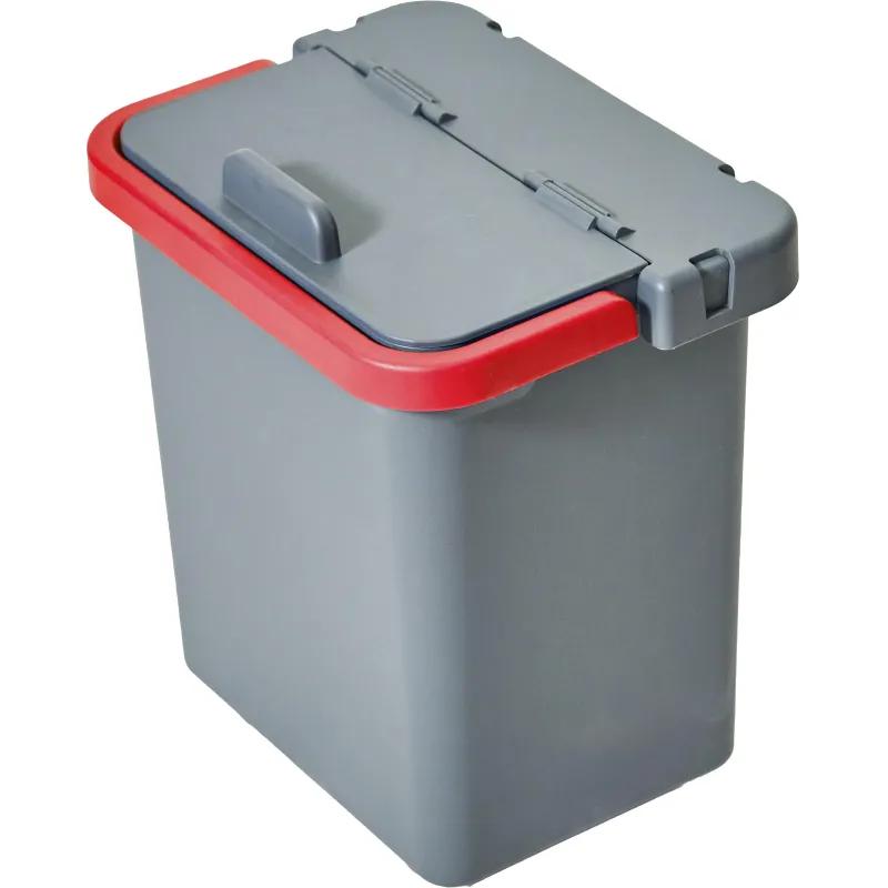 Ведро с крышкой Росмоп 5 л пластик серое/красная ручка (с мерной шкалой, ударопрочное)<br><br>Ведро объёмом 5 л изготовлено из ударопрочного пластика и оснащено съёмной крышкой. Прямоугольная форма позволяет удобно хранить и переносить мелкий уборочный инвентарь, салфетки или моющие насадки. Ведро можно использовать как с крышкой, так и без неё.<br>Серая поверхность маскирует загрязнения при длительной эксплуатации, а красная ручка служит элементом цветовой кодировки. Крышка открывается на 180 градусов, что облегчает доступ внутрь. На боковой стенке нанесена мерная шкала для точного разведения моющих растворов.<br>Ведро совместимо с тележками и вёдрами Росмоп: крепится на заднюю стенку модели ПРО-25 или на боковые стойки моделей ДБ-25, ДБ-50 и ДБ-75. <br>Размеры изделия: верхняя часть 16×21.5 см, нижняя 20.5×14.5 см, высота 23.5 см. Весит 0.44 кг.