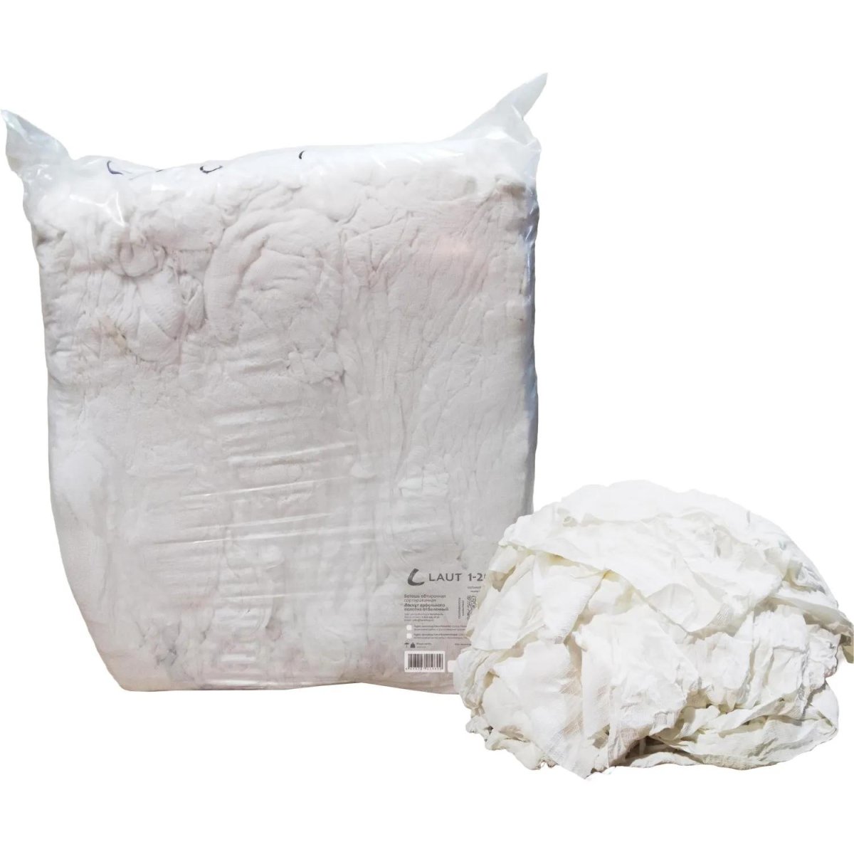 Ветошь произведена из отбелённого вафельного полотна различной плотности.<br>Лоскут неправильной формы, средний размер 40×60 см, края лоскута не обработаны и могут осыпаться.<br><br>Вафельная ткань обладает высокой гигроскопичностью и считается одним из лучших обтирочных материалов, подходит для бытовых и хозяйственных нужд, для любых сфер производства, в т.ч. применяется на пищевых производствах, подходит для работы с агрессивными составами.