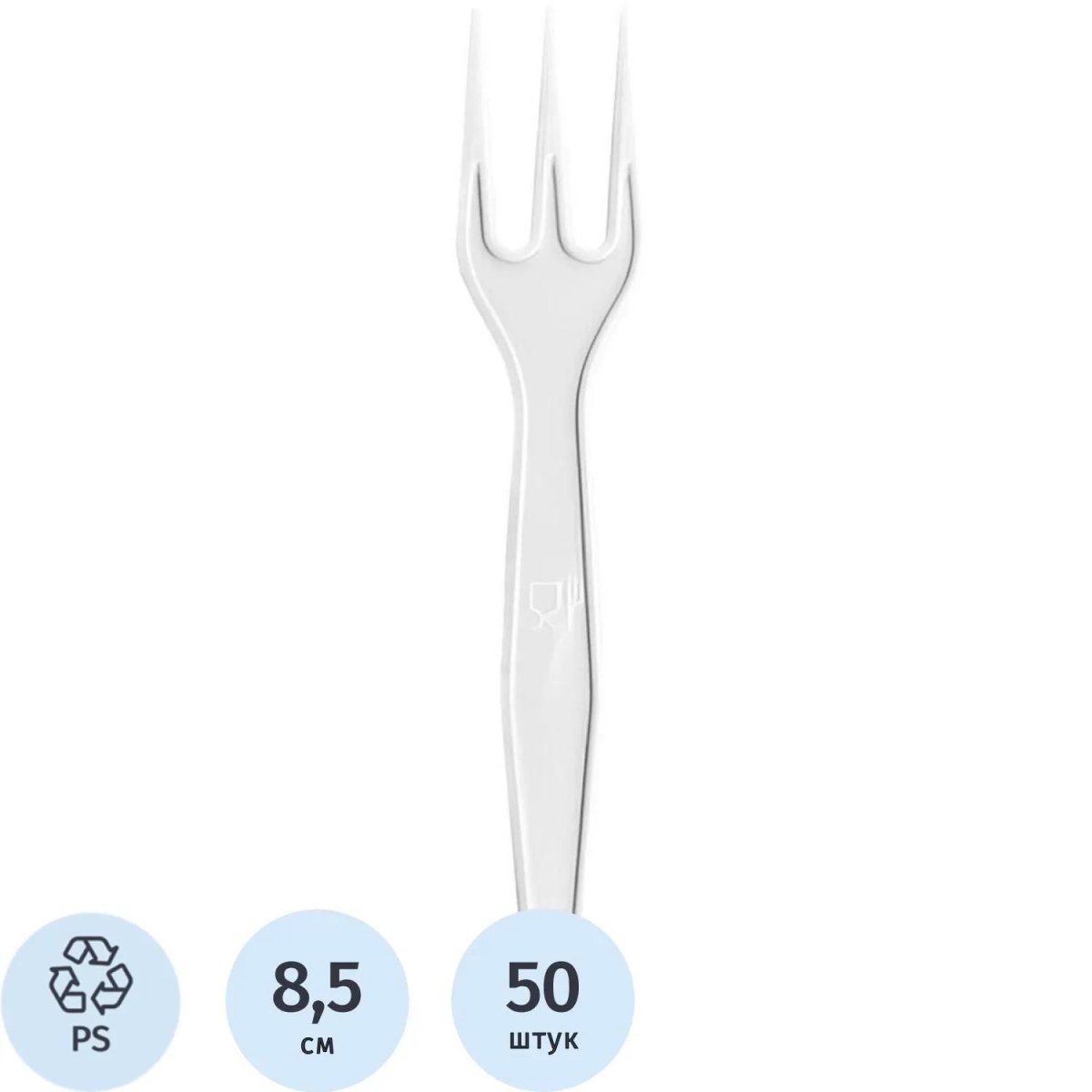 Вилка одноразовая пластиковая предназначена для холодных и горячих блюд. Используется на предприятиях общественного питания, в дороге, на пикнике, в офисном обиходе. <br>Изготовлена из качественного полистирола прозрачного цвета. <br>Длина — 8.5 см. <br>В упаковке 50 штук, в коробке — 80 упаковок.