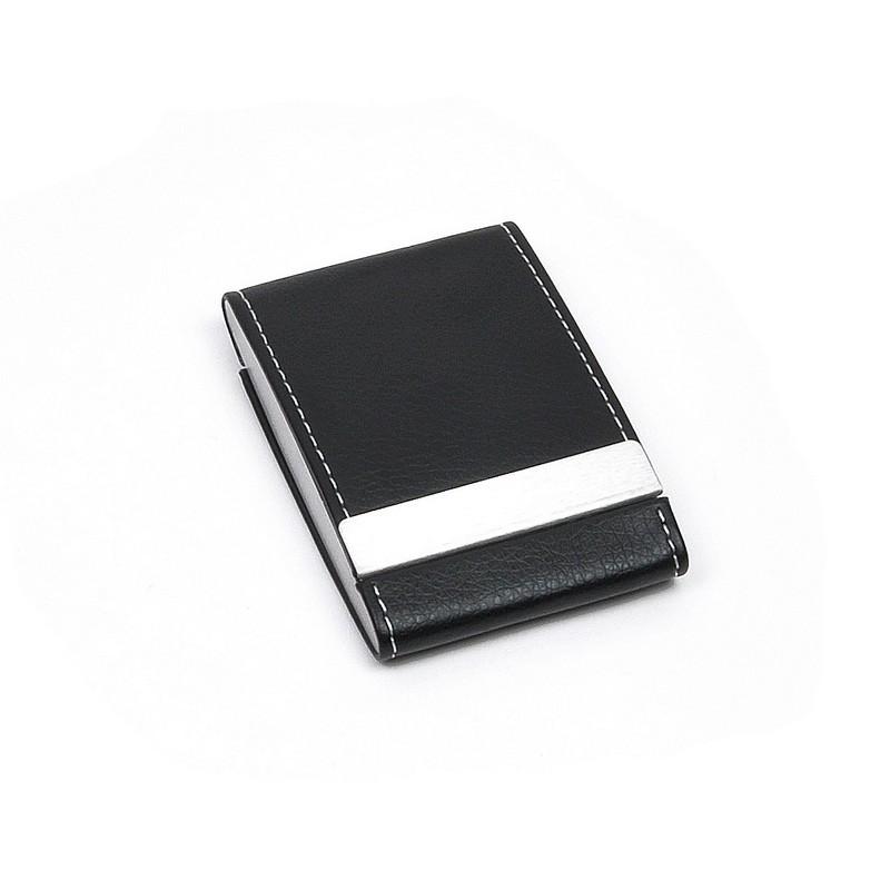 Стильная подарочная двусторонняя визитница на 20 визиток из хромированного металла с отделкой из экокожи. Станет отличным презентом как коллегам, так и <nobr>бизнес-партнерам</nobr>. Имеется шильд для гравировки. Современному деловому человеку необходима визитница. Это удобный способ держать все важные контакты под рукой или хранить свои собственные визитки. Поставляется в картонном футляре черного цвета. <BR>Размер — 6,3×9,6 см.