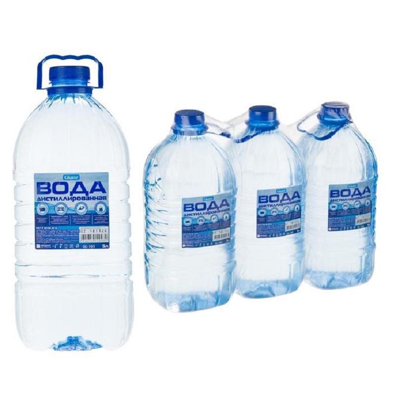 Вода дистиллированная Glanz 5 л применяется для автомобилей: корректировка t замерзания зимней стеклоомывающей жидкости, разбавление концентратов охлаждающих жидкостей. Для АКБ: корректировка плотности электролита. Для бытовых приборов: паровые бытовые приборы (существенно увеличивает срок службы фильтра и исключает образование вредной накипи)<BR><BR><BR>