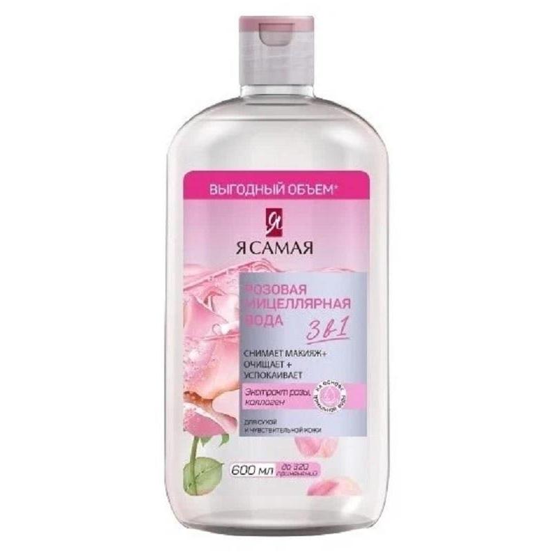 Мицеллярная вода 3 в 1 Я Самая 600 мл<br><br>Розовая мицеллярная вода для сухой и чувствительной кожи. Нежная мицеллярная формула на основе термальной воды не только мгновенно очищает кожу, но и одновременно глубоко увлажняет и ухаживает. Синергия мицеллярного комплекса и активных компонентов легко и естественно удаляет макияж с лица, глаз и губ без лишнего трения. Экстракт розы успокаивает, поддерживает водный баланс. Коллаген играет важную роль для защиты и увлажнения кожи, а также повышает тонус и эластичность.<br><br>Состав: Aqua, Poloxamer 184, Glycerin, Vitis Vinifera Seed Oil, Argania Spinosa Kernel Oil, Rosa Damascena Flower Extract, Maris Sal, PEG-40 Hydrogenated Castor Oil, Sodium Hyaluronate, Benzyl Alcohol, Sodium Benzoate, Potassium Sorbate, Citric Acid, Disodium EDTA, Parfum.