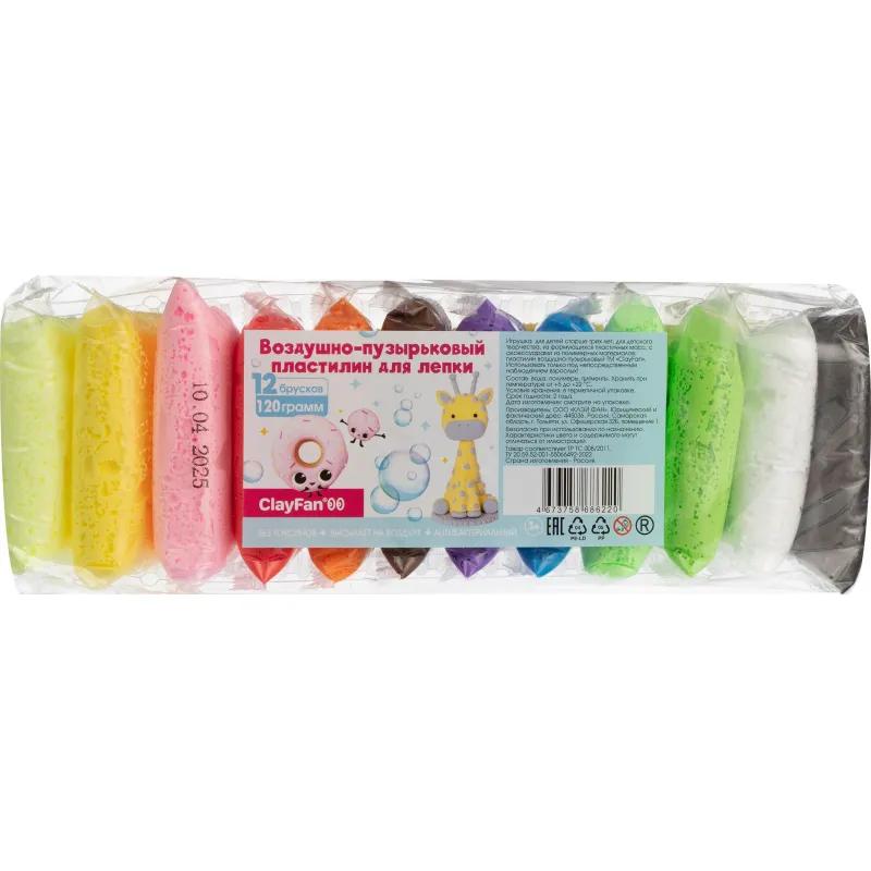 Воздушный пластилин ClayFan 12 цветов 120 г<br><br>Воздушный пластилин предназначен для лёгкого и увлекательного моделирования детьми от 3 лет. Масса весом 120 г включает 12 ярких цветов, которые легко смешиваются между собой и сохраняют форму после высыхания. Пластилин приятно держать в руках: он не липнет к пальцам, не крошится и легко поддаётся лепке. В комплект входит пластиковая стека, которая помогает формировать мелкие детали. Упакован в полиэтиленовый пакет. Изделие произведено в России.