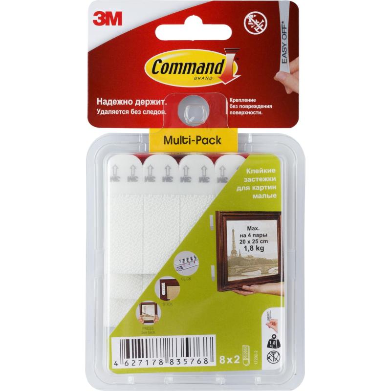 Застежки самоклеящиеся Command для картин белые малые 8 пар (17202-2)<br><br>Command — это уникальная адгезивная технология для лёгкого, надёжного и безопасного крепления разнообразных аксессуаров на вертикальной поверхности. Данная система позволяет организовать пространство без применения инструментов и не повреждая поверхности. При необходимости можно удалить, потянув за клейкую полоску. Благодаря настенным застёжкам Command любое помещение легко декорируется картинами и плакатами. Все изображения, зафиксированные настенными застёжками, легко заменяются, т.к. при снятии картины нет необходимости удалять с поверхности сам крепёж. Одна застёжка фиксируется на стене, а другая — на раме. Именно поэтому вы можете вешать и снимать ваши фотографии и другие малые декоративные предметы так часто, как пожелаете. Для рамок и картин, настенных часов, домофонов, роутеров. Легко крепится, держит крепко, удаляется без следа, без применения инструментов.<br><br><!--noindex-->Внешний вид и/или характеристики товара могут быть изменены производителем в соответствии с производственным процессом.<!--/noindex-->