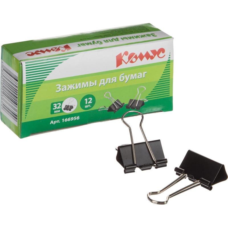 Металлические зажимы для бумаг Комус используются для скрепления документов без использования степлеров. Зажимы из металла с черным покрытием. Размер зажима: ширина 32 мм, высота 57 мм, глубина закладки 20 мм. Позволяет скреплять до 140 листов плотностью 80 г/кв.м, не деформируя при этом бумагу. Зажимы для бумаг поставляются по 12 штук в картонной упаковке.<BR>В транспортном коробе 20 упаковок. <BR>Зажимы Комус — это надежное скрепление документов.<br>Для эффективного скрепления максимально допустимого объема листов бумаги необходимо, чтобы листы были собраны в ровную стопку без заломов, загибов и дефектов поверхности бумаги.