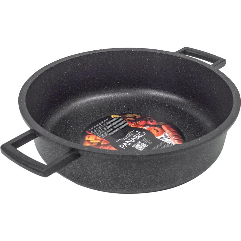 Жаровня предназначена для приготовления различных блюд, таких как жарка, тушение или обжаривание на высоких температурах. Она подходит для всех типов плит, кроме индукционных. Особенностью является её универсальность и удобство использования на газовых, электрических и стеклокерамических плитах. <br><br>Особенности и преимущества: <br>1. Большой диаметр (28 см) и объём (4 л) обеспечивают удобство перемешивания и подходят для тушения и томления. <br>2. Прочные литые алюминиевые ручки не ломаются, посуда устойчива к деформациям и повреждениям. <br>3. Подходит для использования в духовом шкафу благодаря возможности снять крышку (крышка в комплект не входит). <br>4. Высокие стенки (8 см) и толстое дно предотвращают разбрызгивание еды и поддерживают чистоту на кухне. <br>5. Толщина дна 5 мм исключает деформацию, обеспечивает равномерный нагрев и длительное сохранение тепла.<br>6. Литой алюминий гарантирует прочность и долговечность посуды. <br>7. Безопасное пятислойное антипригарное покрытие нанесено методом напыления, не содержит PFOA и PTFE. <br>8. Можно мыть в посудомоечной машине в режиме Эко. <br>9. Совместим с газовыми, электрическими и стеклокерамическими плитами, включая галогенные конфорки. Не подходит для индукционных плит. <br>10. Мраморный чёрный цвет универсален для любого интерьера и сохраняет внешний вид даже после длительного использования. <br><br>Перед первым использованием удалить этикетки, вымыть посуду тёплой мыльной водой и ополоснуть, смазать внутреннюю поверхность тонким слоем масла. Не нагревать пустую посуду и не охлаждать её резко. Избегать скольжения посуды по поверхности плиты или стола. Ставить только на чистую плиту. Не допускать попадания соли или сахара на поверхность во время готовки. Рекомендуется использовать силиконовые или деревянные кухонные приборы для продления срока службы.